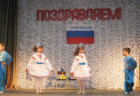 В ходе праздничного концерта всех присутствующих поздравили: председатель Русской общины Крыма Сергей Цеков, председатель Красногвардейских районных организаций Русской общины Крыма и партии «Русское Единство» Александр Билиневич.