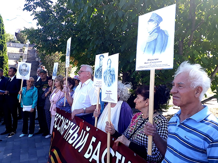 В памятной акции приняли участие представители Русской общины Крыма во главе с председателем Русской общины Крыма, членом Совета Федерации Сергеем Цековым. В мероприятии участвовали заместитель председателя Русской общины Крыма, депутат Государственной Думы РФ Андрей Козенко, члены Президиума Русской общины Крыма Валерий Аксёнов, Наталья Лантух, Георгий Шаповалов, Игорь Евтюшкин, активисты Симферопольской организации Русской общины Крыма. По традиции, члены Русской общины Крыма в рамках патриотической акции «Бессмертный бастион» принесли c собой портреты героев Крымской войны 1853-1856 годов.