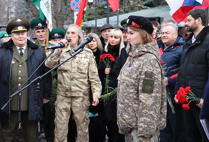 Первый заместитель Председателя Государственного Совета Республики Крым Ефим Фикс поздравил собравшихся с праздничной датой от имени Государственного Совета Республики Крым и его председателя Владимира Константинова. Выступающий отметил, что 366 лет назад два братских народа объединились, чтобы вместе строить свою жизнь. «И в горе и в радости, и в успехах и в поражениях мы были вместе. Мы были вместе и радовались нашим успехам и созиданиям. И самое главное – мы побеждали». Ефим Фикс подчеркнул, Российская и Украинская советские республики вместе освобождали свою Родину и всю Европу от нацизма. Выступающий отметил, что события 2014 года разделили Украину. Одна из движущих сил раскола – радикальные политические силы, проводящие нацистские марши на улицах города-героя Киева. «К счастью, дончане и луганчане с нами, тем самым еще раз подтверждая, что Украина и Россия навеки вместе. И пусть это – пока малая часть. Но пройдет время, – и вся Украина вместе с Россией скажут: мы едины!», – заключил заместитель Председателя Государственного Совета Республики Крым.