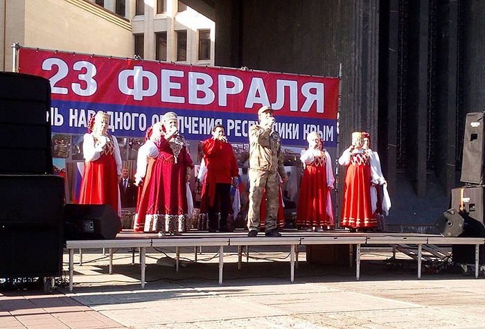После этого у здания крымского парламента прошел митинг, посвященный 6-й годовщине со дня образования Сводного полка Народного ополчения Республики Крым. Выступая на митинге, Сергей Аксенов отметил, что именно 23 февраля 2014 года сформировалось крымское ополчение против киевского Майдана.