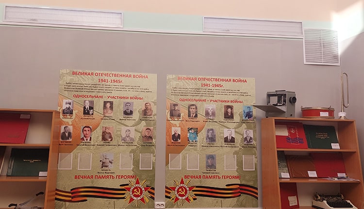 В музее действует 4 экспозиции, экспонаты которых собирались по крупицам учениками, жителями села и педагогами школы. Школьный музей – это историческая летопись села Красногорка, которую ребята будут изучать на уроках истории, классных часах и во время экскурсий. Каждая стена в музее приурочена определенному событию: центральная стена посвящена Великой Отечественной войне, на которой оформлены стенды с участниками Великой Отечественной войны – жителями с. Красногорки, их история, подвиги. В демонстрационных витринах – боевые награды и документы. Следующая стена – участники Афганской войны и СВО (в Красногорке есть герои, которые не вернулись с Афганской войны и, к сожалению, те, кто уже не вернулся с СВО). Также оформлена интерактивная стена, на которой размещен экран, с помощью которого планируется проводить интерактивные мероприятия и уроки в нетрадиционной форме, с демонстрацией оцифрованных документов из архива и интернета. Вдоль этой стены размещены стенды с историей родного села и школы.