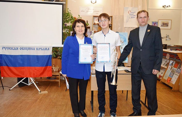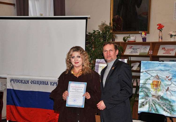 В завершение мероприятия всем артистам и поэтам были вручены благодарности за участие в итоговой годовой творческой встрече Крымского культурного общества «Таврика» и личный вклад в дело развития культуры в Крыму за подписью директора МБУК «ЦБС для взрослых» Евгении Никоновой и председателя Симферопольской городской организации Русской общины Крыма Максима Кутяева.