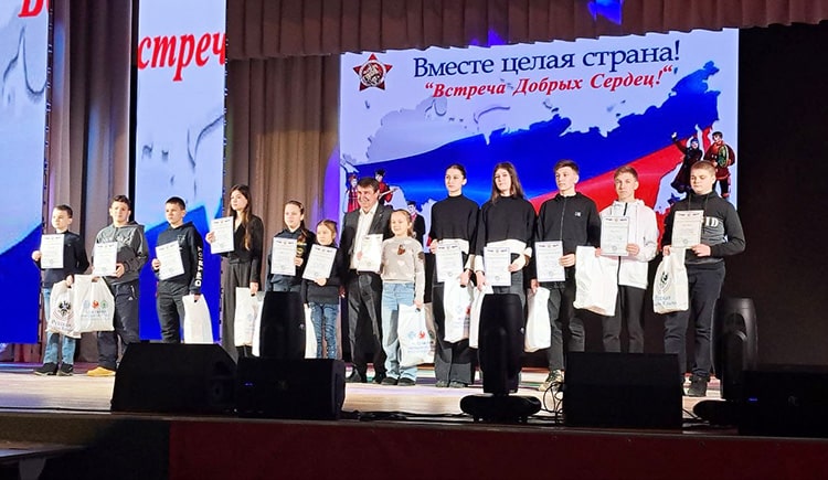 Участники патриотической акции «Встреча Добрых сердец» по достоинству оценили огромный вклад волонтёрского движения в помощь военнослужащим, выполняющим свой долг перед Отечеством и народом в ходе проведения СВО. В ходе мероприятия состоялась церемония награждения активистов волонтёров. Из 100 человек награждённых 20 составляли школьники, самоотверженно трудящиеся наравне с взрослыми во имя нашей общей Победы. Была отмечена особая роль единения представителей всех национальностей, проживающих на территории нашей Республики в деле поддержки защитников нашей Родины. Единство и патриотизм – это не просто слова, а движущая сила подвигов бойцов на передовой и вклада тружеников тыла в победу над недругами России, мечтающими уничтожить нашу страну.