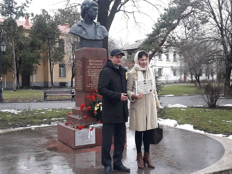 Завершилось мероприятие возложением цветов к памятной доске В.С. Высоцкому.